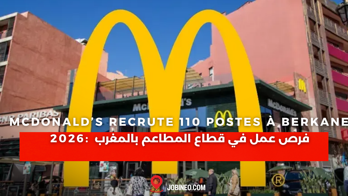 يُعد إعلان McDonald’s recrute 110 postes à Berkane 2026 من أبرز فرص العمل في القطاع الخاص بالمغرب خلال هذه الفترة، حيث أطلقت شركة McDonald’s حملة توظيف واسعة بشراكة مع ANAPEC.